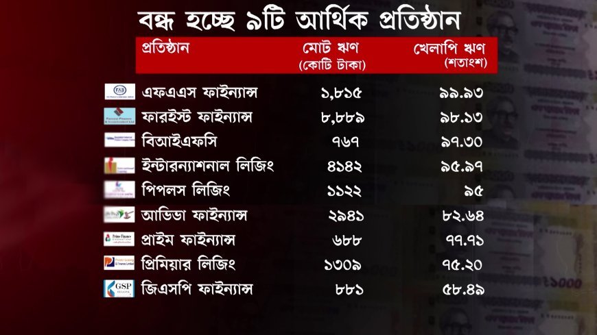 নিজস্ব প্রতিবেদক: অবশেষে অনিয়ম, দুর্নীতি আর খেলাপির ভারে নুয়ে পড়া ব্যাংক বহির্ভূত ৯টি আর্থিক প্রতিষ্ঠানের লাইসেন্স বাতিল ও অবসায়ন করতে যাচ্ছে বাংলাদেশ ব্যাংক। আনুষ্ঠানিক ঘোষণা আসবে চলতি মাসেই। যদিও অবসায়নের পর আমানতকারীদের অর্থের কী হবে? এখনও সেই প্রশ্নের উত্তর খুঁজছে স্বয়ং কেন্দ্রীয় ব্যাংক। সিদ্ধান্ত চূড়ান্ত করার আগেই সুনির্দিষ্ট রোডম্যাপ করার তাগিদ দিচ্ছেন খাত সংশ্লিষ্টরা।
